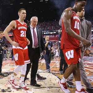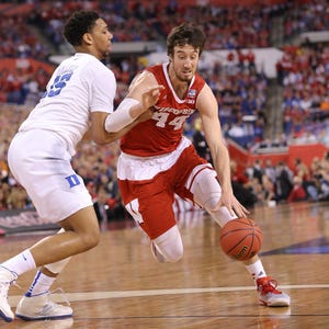 Wisconsin led 48-39 with less than 13 minutes to play. Bronson Koenig and Frank Kaminsky were scoring repeatedly, and Duke wasn't just helpless to stop them. Duke was helpless, period. On one possession Kaminsky shot a 3-pointer and missed it short, and there was a fight for the rebound — a fight between three Wisconsin players, Kaminsky and Josh Gasser and Duje Dukan, the only three players near the loose ball. Gasser won it, Koenig cut to the basket for a layup, and Duke was in danger.